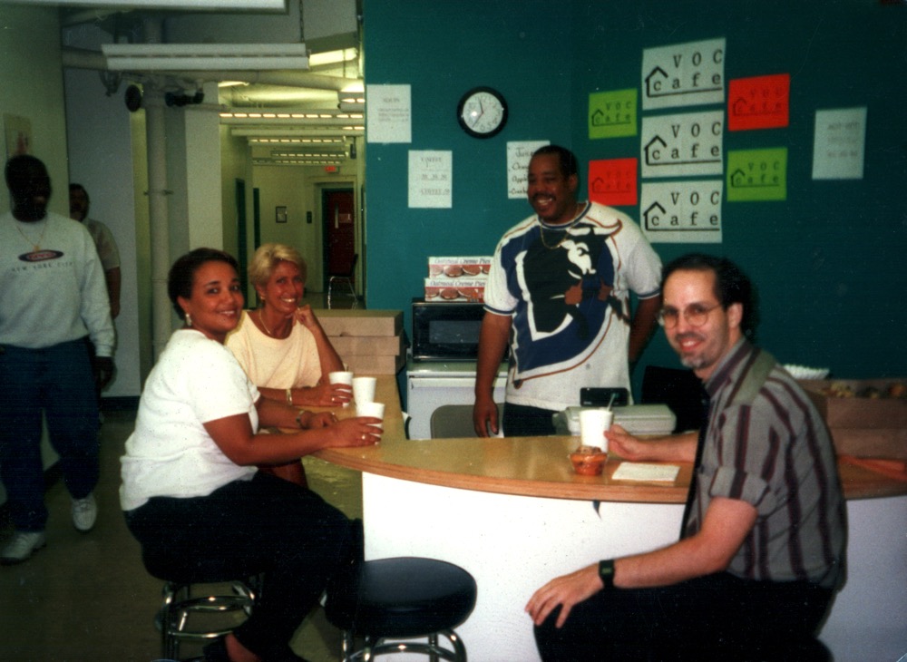 The only known photo of Antonio Pratt. This image is of Antonio (Tony) Pratt, Mr. Jordan Freeman (right), and his wife, taken at a café that was a program site of the Institute for Community Living (ICL) – a housing and rehabilitation agency. (1997)