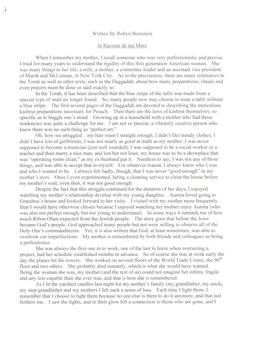Tribute to Roberta Bernstein Heber, written by daughter Robyn Bernstein
