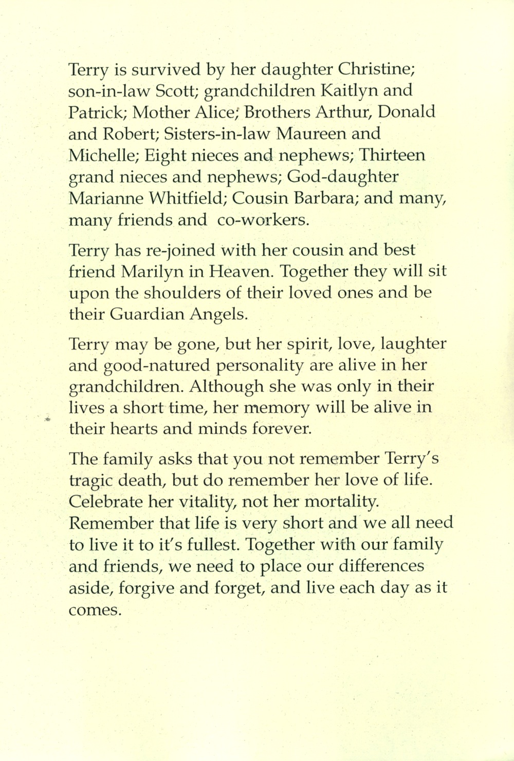 May God heal the pain of loved ones lost ...many blessings to terry s family and friends...the Munson Family